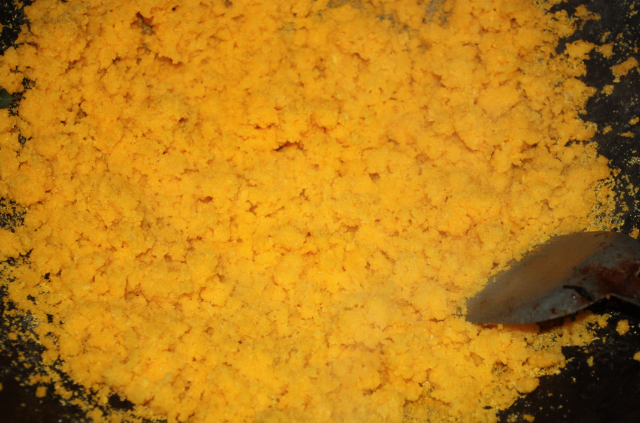鎮(zhèn)坪鹽背子飯散粒金黃,雖然沒(méi)油沒(méi)鹽,但吃起來(lái)不噎不膩,清香爽口,沒(méi)有一點(diǎn)粗糙之感,在路途上存放時(shí)間長(zhǎng),是背鹽人耐餓、耐渴的理想食品。