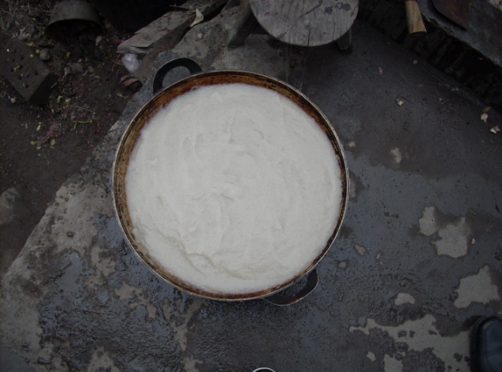 嵐皋手工制作魔芋豆腐有嚴(yán)格的步驟:先將鮮魔芋洗凈,去掉黑粗皮,用手握住魔芋,在特制的工具(用釘子釘有許多小眼的鐵皮)上或竹篾編織的撈箕背面快磨成漿,邊磨邊兌水,每斤濃漿汁兌水4~6斤,水是沉淀后的草木灰水,用木棒不停地攪動,以防凝成疙瘩。然后將攪拌好的魔芋漿倒入鐵鍋內(nèi)煮,待煮至九分熟時,兌入5%的堿面或生石灰,攪拌均勻,以消解魔芋中的有毒成分。這時,魔芋漿汁的體積一般會膨脹好幾倍,顏色由黑變灰。待冷卻凝固后,切成塊狀,放入清水中,漂三四次,即成魔芋豆腐。
