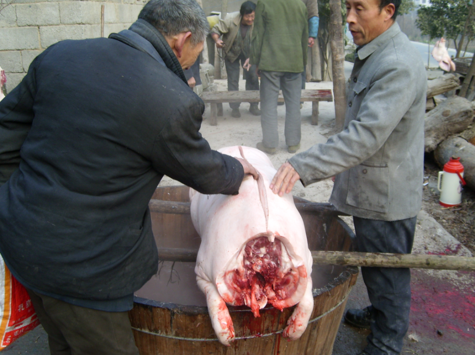 吃泡湯肉就是主人用剛宰殺的新鮮豬肉置辦酒席。過年殺豬有一番講究,要選擇吉日,還要請把式(殺豬匠),砍肉也有講究。泡湯肉的原料一般用“槽頭肉”,因為“槽頭肉”塊頭大,而且有肥有瘦,便于廚房烹制。殺豬后待眾人把豬的頭、蹄、下水收拾停當,煙吸過,茶喝罷,鮮美可口的泡湯肉就端上了桌。幾碟子幾碗,有炒有燉,再滿滿斟上幾碗自家釀制的柿子酒或拐棗酒。喝酒通常用碗不用盅,真應了“大塊吃肉,大碗喝酒”的說法。一人一碗酒下肚,再猜寶劃拳打通關,直鬧到深夜方罷。