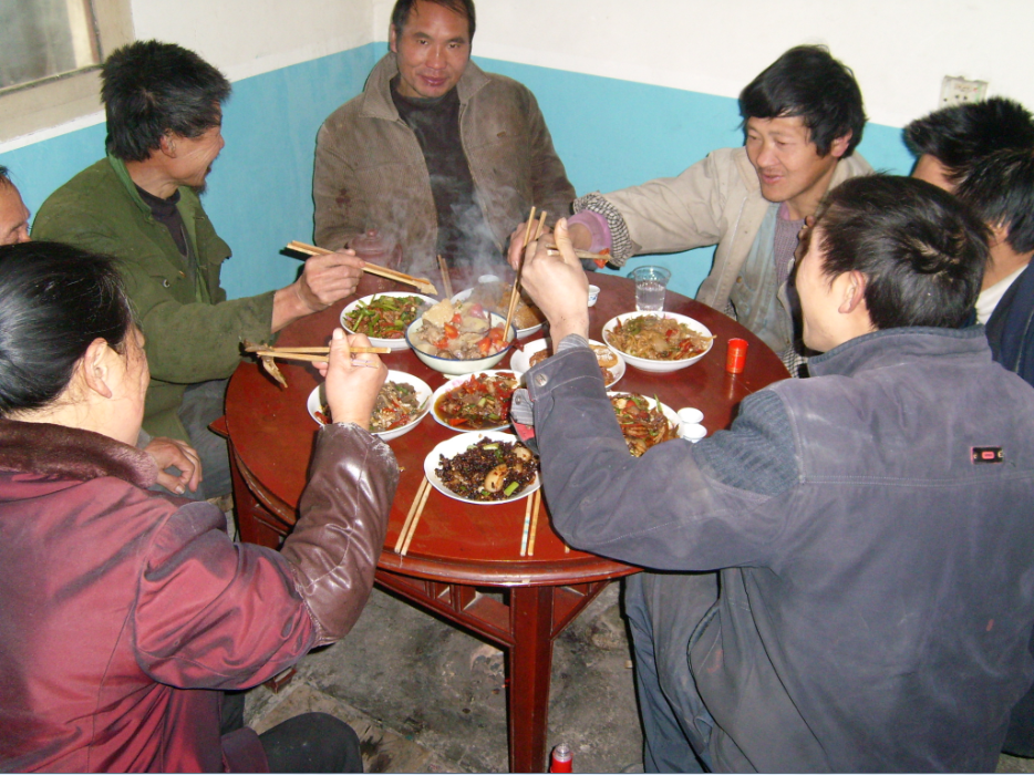 嵐皋縣地處大巴山北麓,地域廣闊,民風淳樸,為人厚道。當地人過年殺豬,把親朋好友、左鄰右舍聚在一起,吃肉喝酒成了老百姓們最奢侈、最驕傲的事。吃泡湯肉是嵐皋當地農民世代相傳的一種風俗。