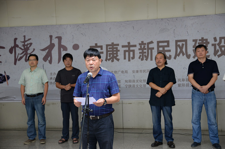 2017年8月24日,由中共安康市委宣傳部、 安康市文化文物廣電局、 安康市民風(fēng)辦主辦主辦,安康市群眾藝術(shù)館、安康書畫院承辦的抱素懷樸?安康市新民風(fēng)建設(shè)書法作品展在市群眾藝術(shù)館開展。中共安康市委宣傳部副部長(zhǎng)、市文聯(lián)黨組書記李康林,市文化文物廣電局黨組書記、局長(zhǎng)楊海波,市振興漢調(diào)二黃領(lǐng)導(dǎo)小組辦公室副主任王軍,安康日?qǐng)?bào)副總編輯曲勇,市群眾藝術(shù)館館長(zhǎng)周墻等相關(guān)領(lǐng)導(dǎo)出席了開幕式。   本次展出的118件書法作品,以書寫優(yōu)秀家風(fēng)家訓(xùn),歌頌安康新民風(fēng),弘揚(yáng)優(yōu)秀傳統(tǒng)美德和人文精神為主題,充分展示了具有安康特質(zhì)的優(yōu)良民風(fēng)和新時(shí)期安康人民共同的價(jià)值追求和文化自信。作品內(nèi)容豐富,具有其獨(dú)特的文化與藝術(shù)價(jià)值,將為我市新民風(fēng)建設(shè)增添一道靚麗的風(fēng)景。