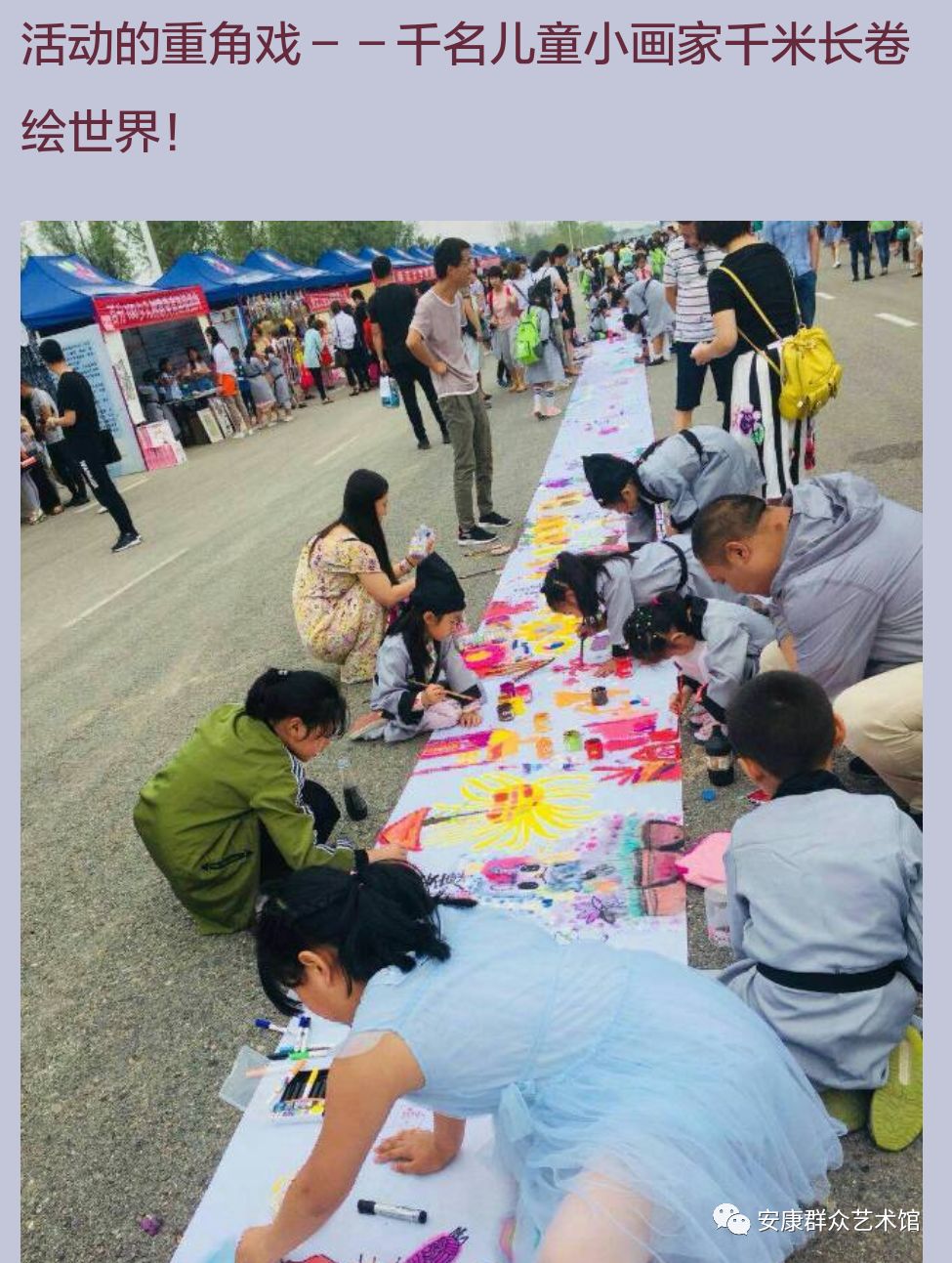 童年是初生的綠葉,童年是含苞的花蕾,童年是一片藍(lán)藍(lán)的天,童年是充滿美麗的夢(mèng)幻。六月一日上午,“一帶一路”第三屆中國(guó)西安國(guó)際少兒美術(shù)節(jié)在西安國(guó)際美術(shù)城拉開(kāi)帷幕。安康市群眾藝術(shù)館派出馬孟剛和劉曉東二位美術(shù)干部參加了此次少兒美術(shù)教育成果交流展。今天小編刊發(fā)劉曉東老師所發(fā)美篇截圖,帶給大家不一樣的精彩!