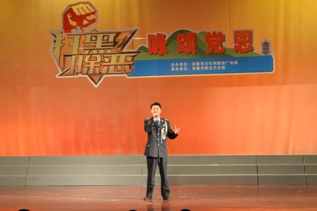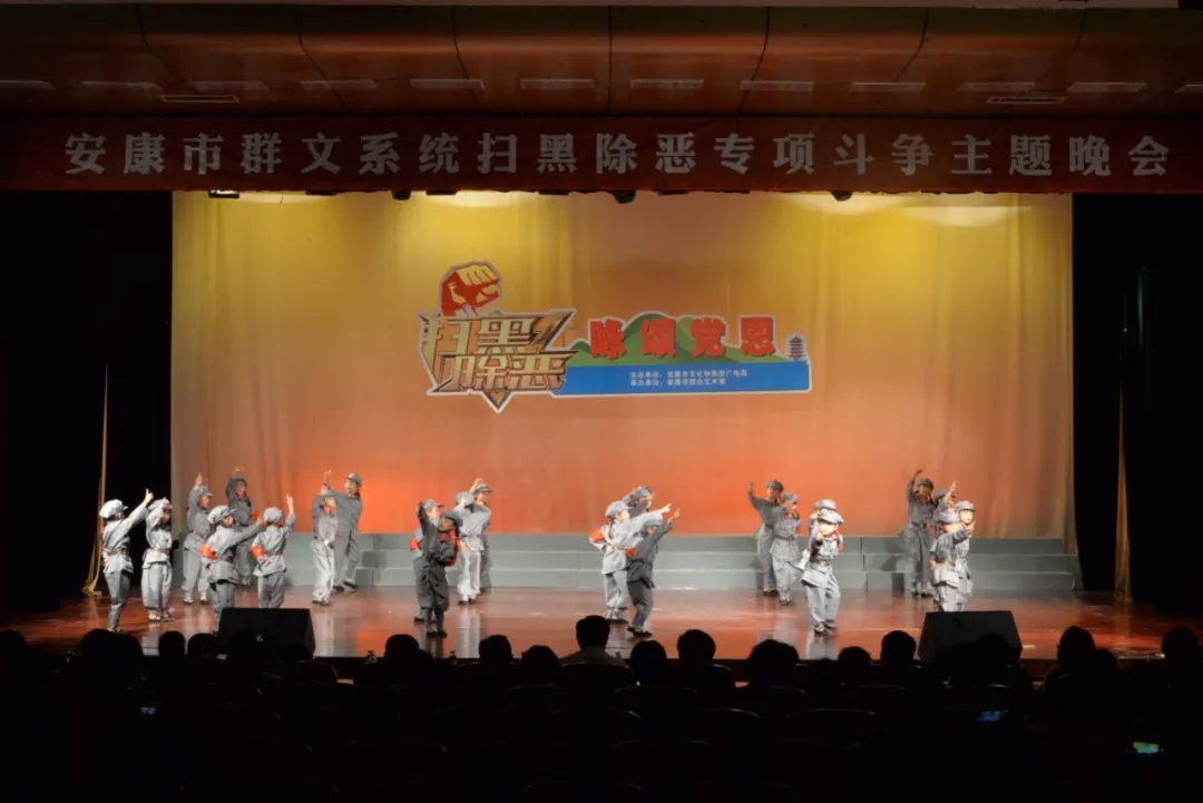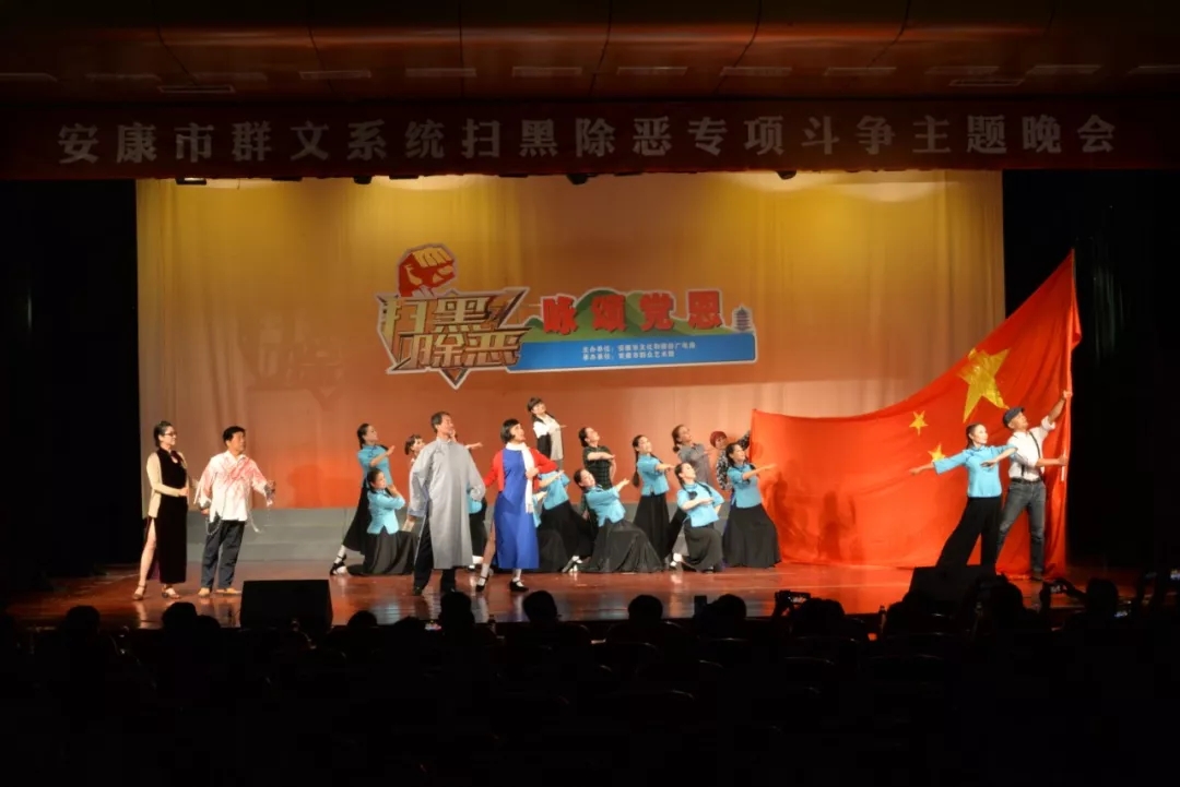 2019年6月25日晚上19:30,由安康市文化和旅游廣電局主辦,安康市群眾藝術(shù)館承辦,安康市曲藝家協(xié)會(huì)、安康南楓民間歌舞團(tuán)、安康博閱學(xué)社、安康水電總廠“舞之戀”藝術(shù)團(tuán)等單位協(xié)辦的市直群文系統(tǒng)“掃黑除惡專項(xiàng)斗爭(zhēng)”主題晚會(huì)又在安康市群眾藝術(shù)館劇場(chǎng)隆重上演,這也是安康中心城區(qū)2019年第一場(chǎng)以“掃黑除惡”為主題的專題晚會(huì)。安康市文化和旅游廣電局黨組書記、局長(zhǎng)楊海波,安康市紀(jì)委常委、安康市監(jiān)委委員、市委巡查組組長(zhǎng)方賢超,安康市委政法委副書記、市掃黑辦副主任朱定新,安康市法學(xué)會(huì)專職副會(huì)長(zhǎng)、市掃黑辦副主任謝賢梅,市掃黑辦副主任曹修斌;安康市文化和旅游廣電局副局長(zhǎng)王軍,安康市文化和旅游廣電局副局長(zhǎng)劉璇,安康市群眾藝術(shù)館館長(zhǎng)周墻等相關(guān)部門領(lǐng)導(dǎo)出席晚會(huì)并和數(shù)百位社會(huì)各界群眾一起觀看了演出。