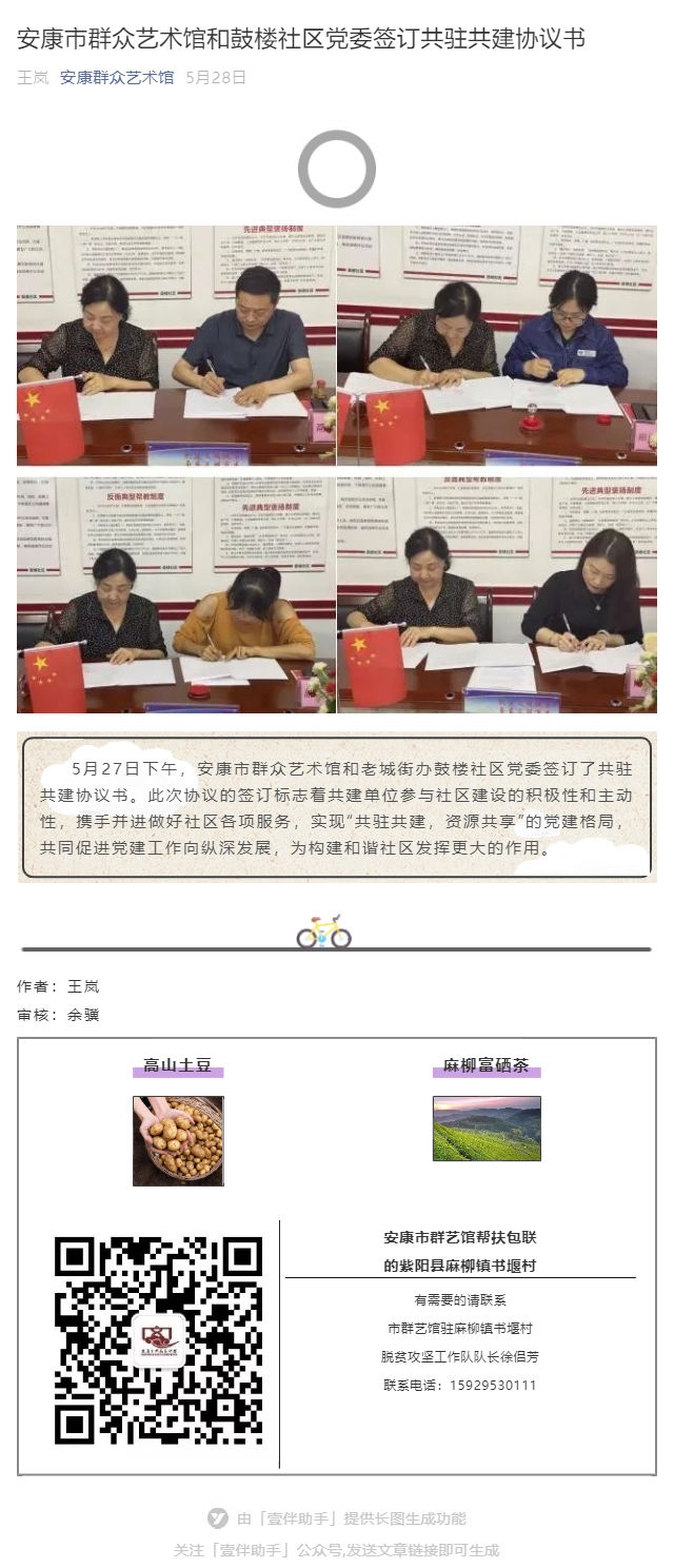 安康市群眾藝術(shù)館和鼓樓社區(qū)黨委簽訂共駐共建協(xié)議書