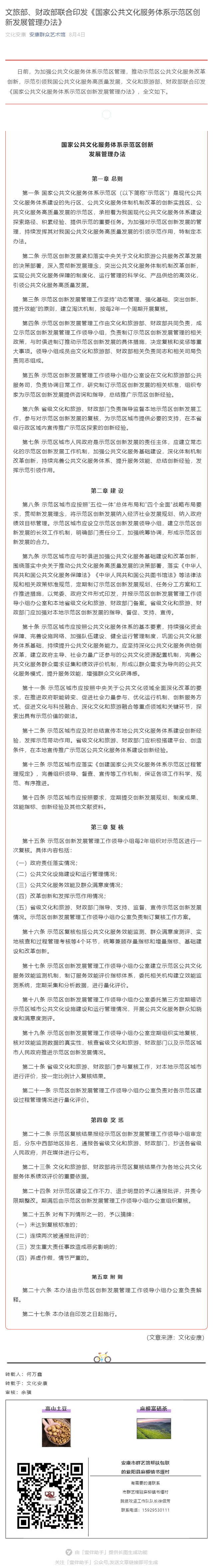 文旅部、財(cái)政部聯(lián)合印發(fā)《國家公共文化服務(wù)體系示范區(qū)創(chuàng)新發(fā)展管理辦法》