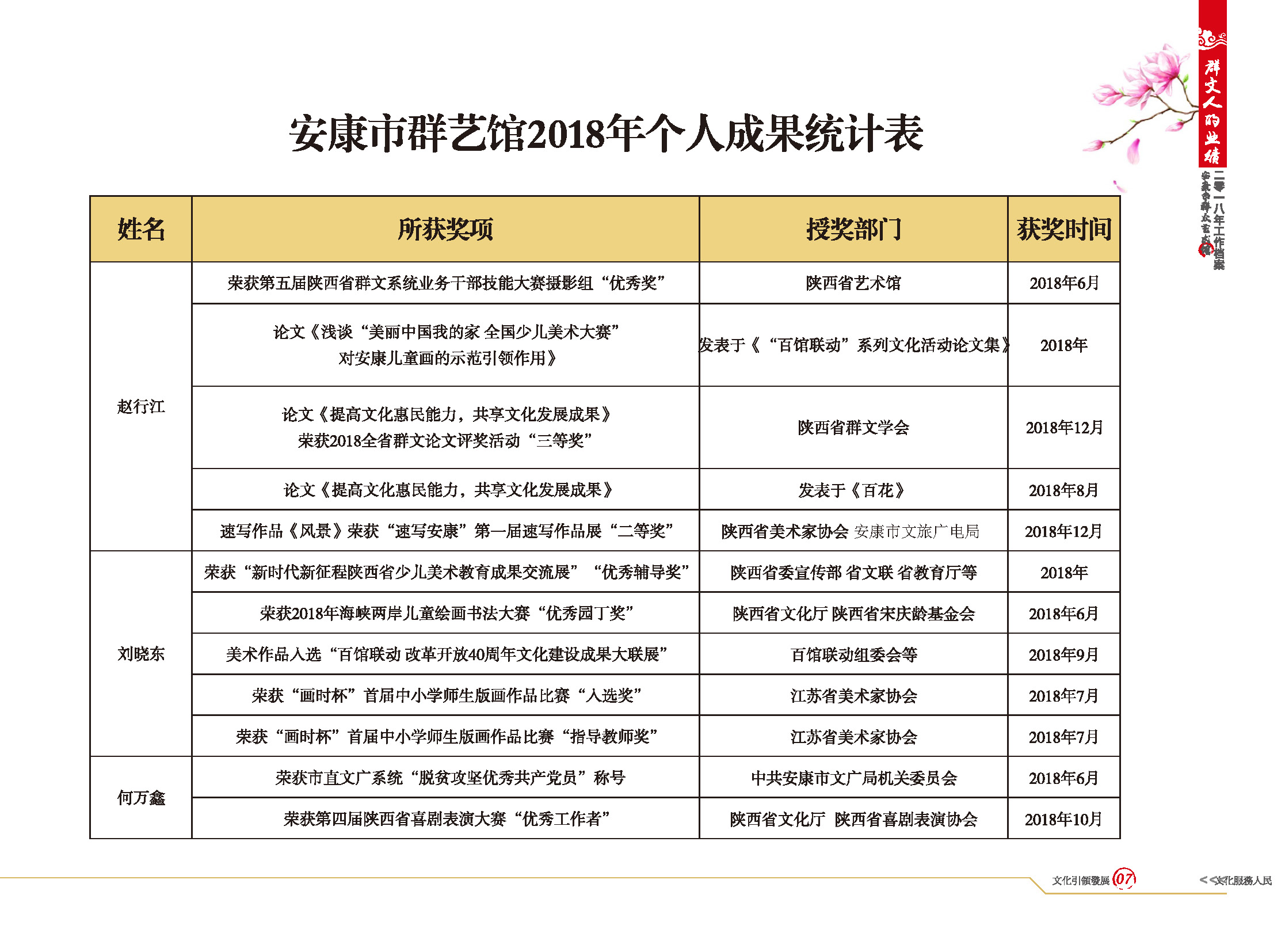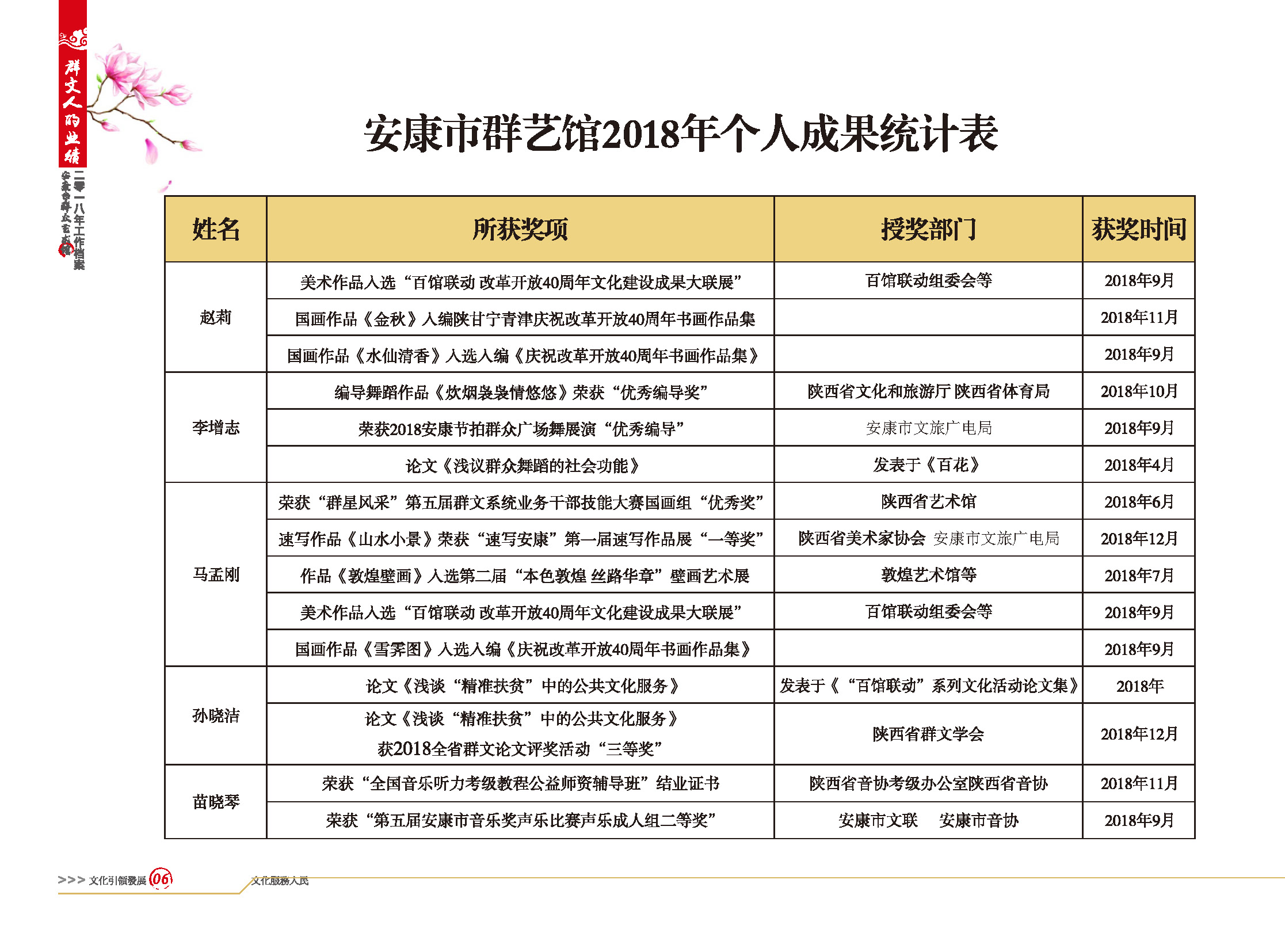 安康市群藝館2018年個(gè)人成果統(tǒng)計(jì)表