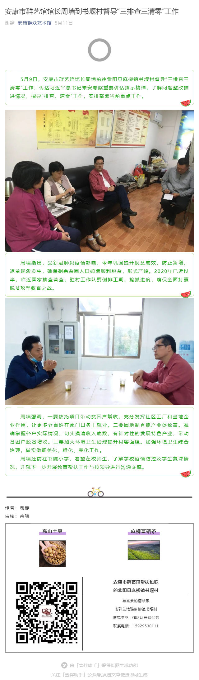 安康市群藝館館長周墻到書堰村督導(dǎo)“三排查三清零”工作