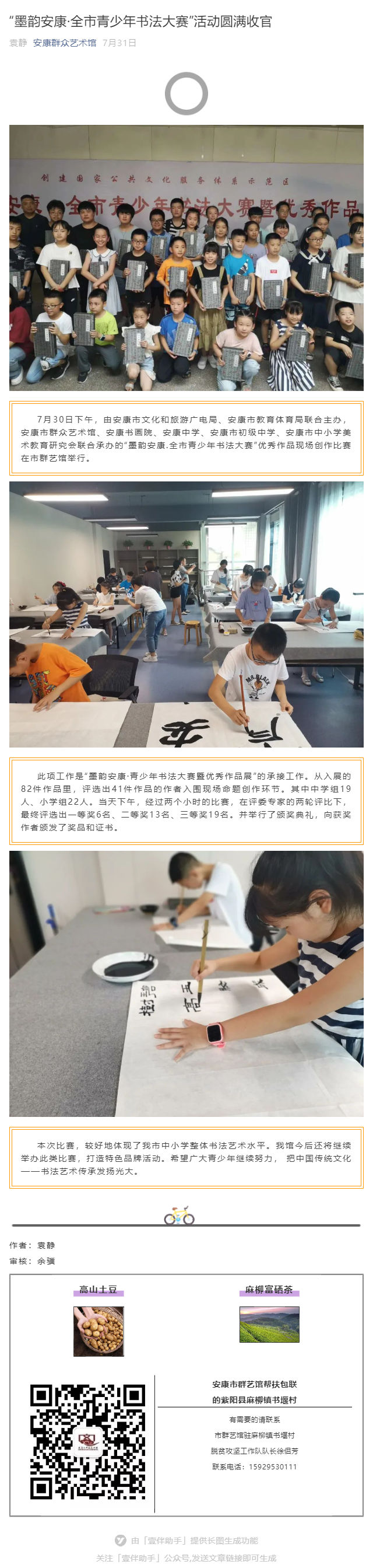 “墨韻安康·全市青少年書法大賽”活動圓滿收官