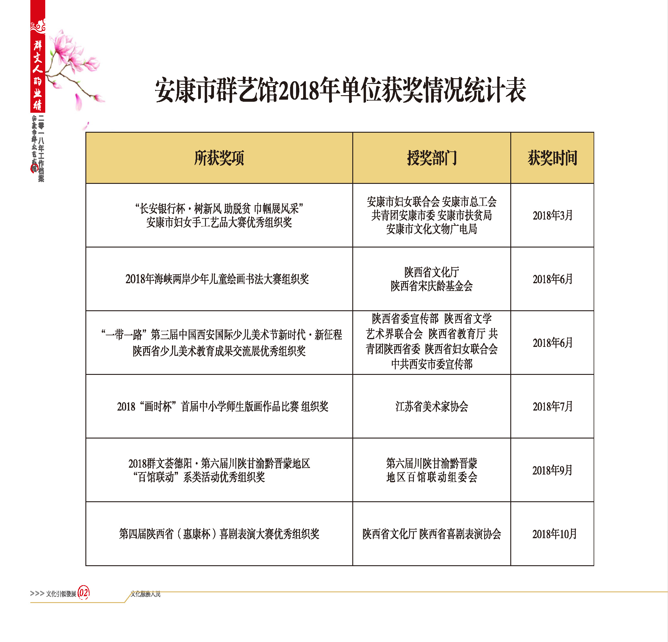 安康市群藝館2018年單位獲獎情況統(tǒng)計(jì)表