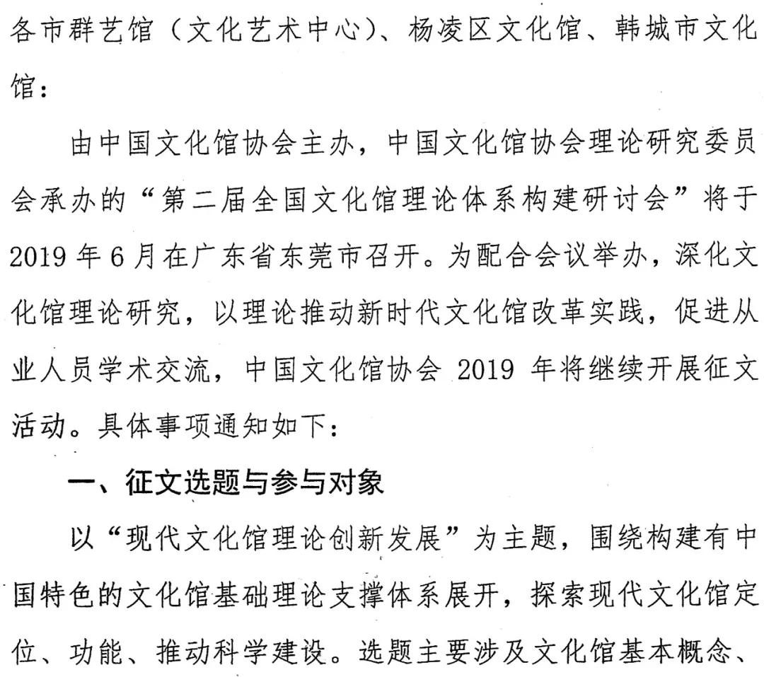 關(guān)于開(kāi)展2019年現(xiàn)代文化館理論創(chuàng)新發(fā)展征文活動(dòng)的通知