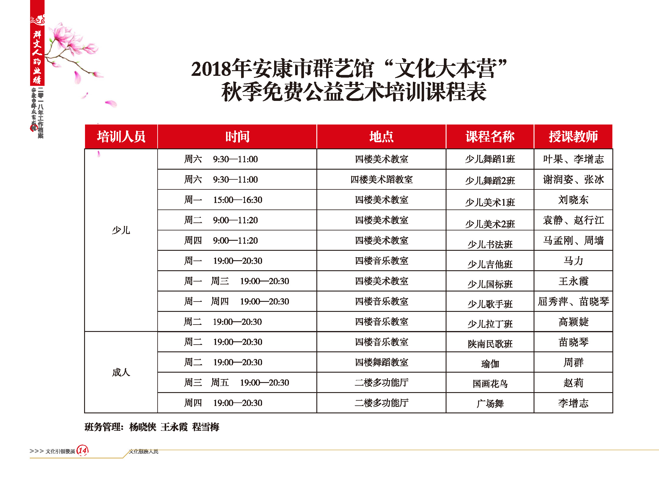 2018年安康群藝館“文化大本營”秋季免費(fèi)公益藝術(shù)培訓(xùn)課課程表