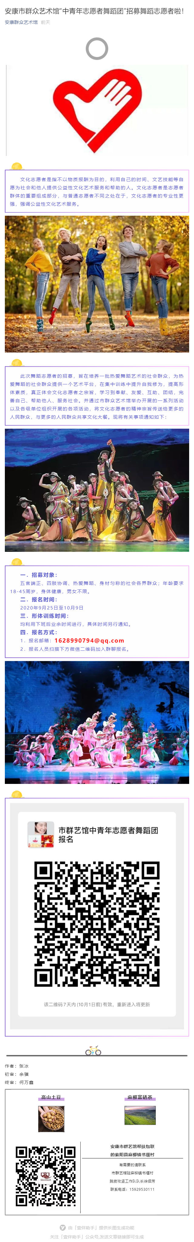 安康市群眾藝術(shù)館“中青年志愿者舞蹈團(tuán)”招募舞蹈志愿者啦!