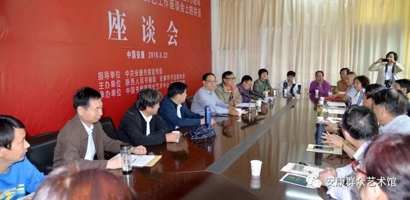 展覽開幕式結(jié)束后,陜西人民書畫院、陜西省新聞書畫家協(xié)會及安康市書法家協(xié)會各成員代表舉行座談,共同溫習(xí)了毛澤東《在延安文藝座談會上的講話》和習(xí)近平總書記在文藝工作座談會上的講話,并圍繞人民需要藝術(shù),藝術(shù)更需要人民和堅持以人民為中心的創(chuàng)作方向,為新時代、新征程做出新貢獻(xiàn)的主題各抒己見,建議獻(xiàn)言。